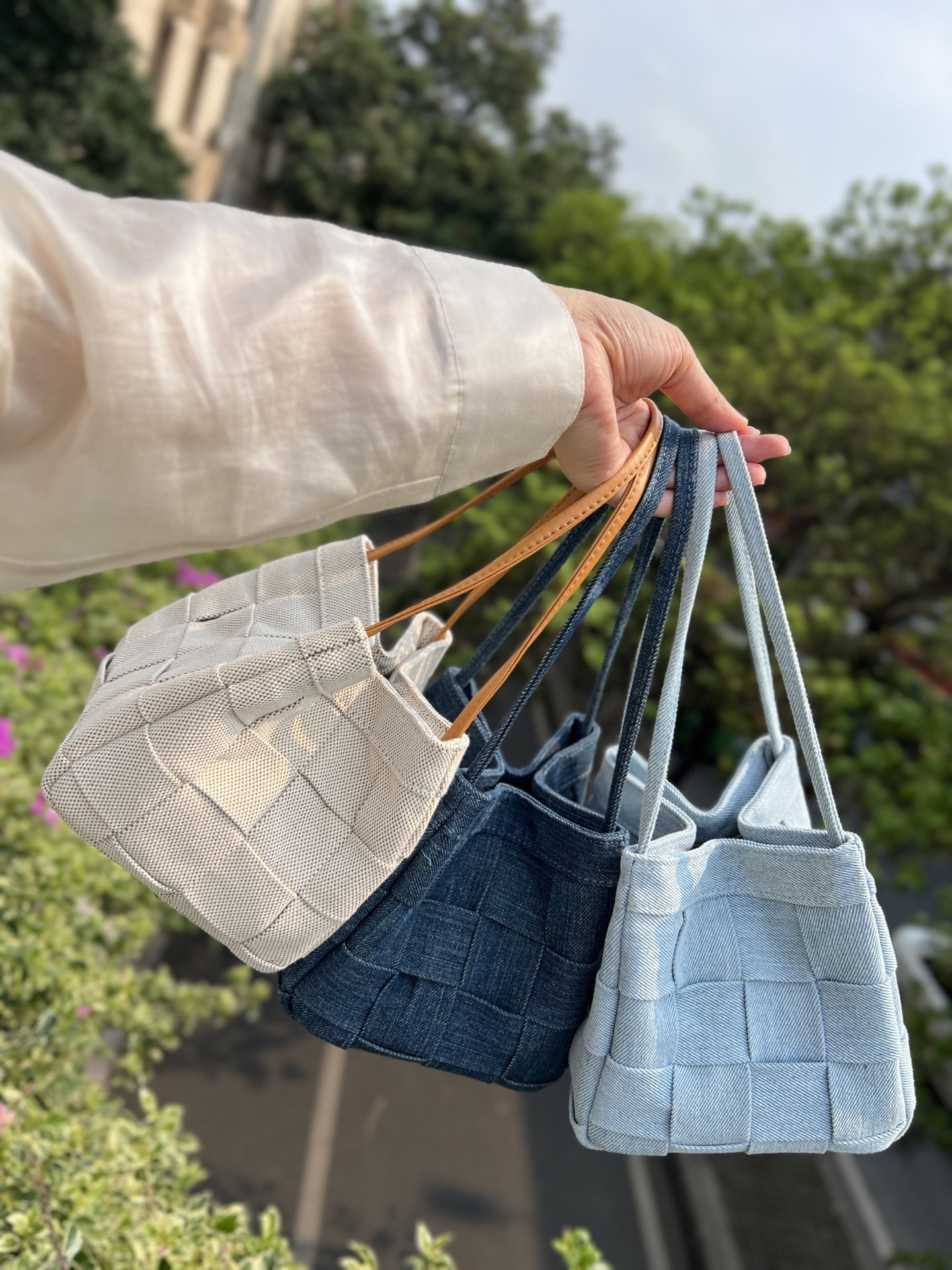 Denim Canvas Woven Basket Tote Bag women's fashion handbag crossbody bag shoulder bag Denim Bag Canvas Bag