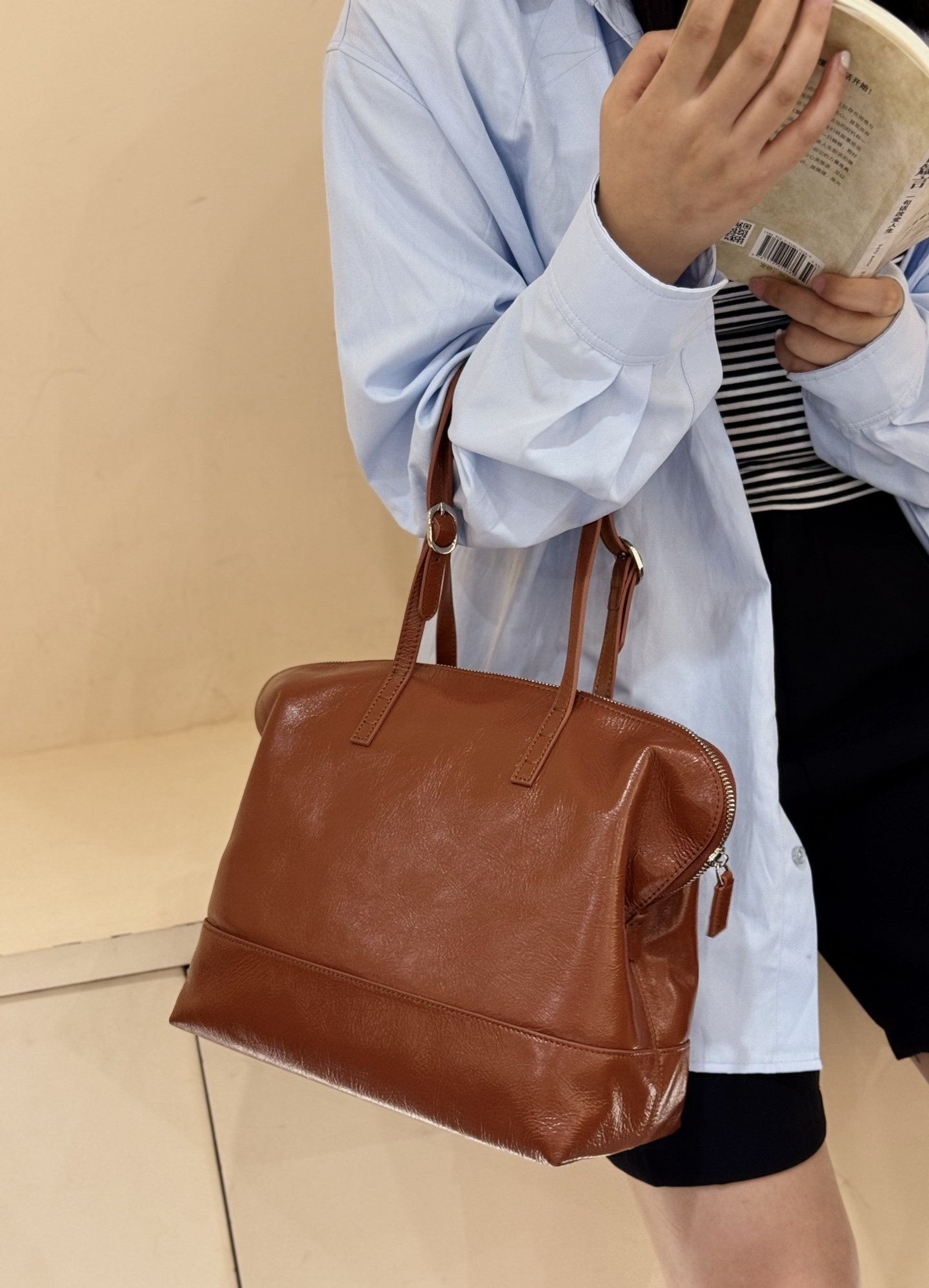 | Top-Grain Oil-Waxed Cowhide Handbag large capacity genuine leather shoulder bag handbag |