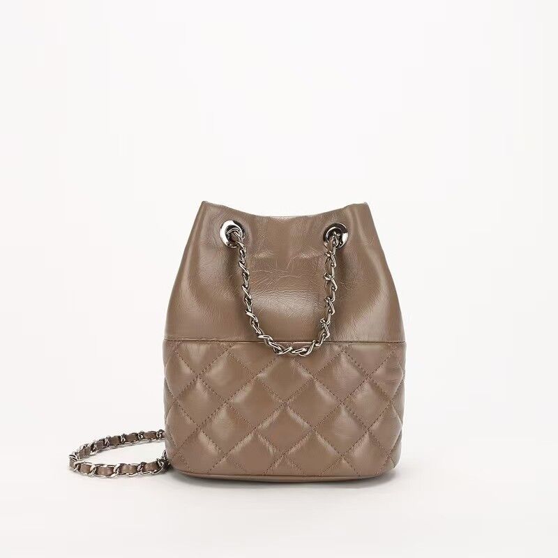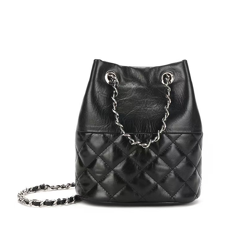 Top-Grain Oil-Waxed Cowhide Luxury Designer Bag Quilted Chain Bucket Bag genuine leather bag Crossbody Bag Shoulder Bag Women's fashion bag wholesale China supplier