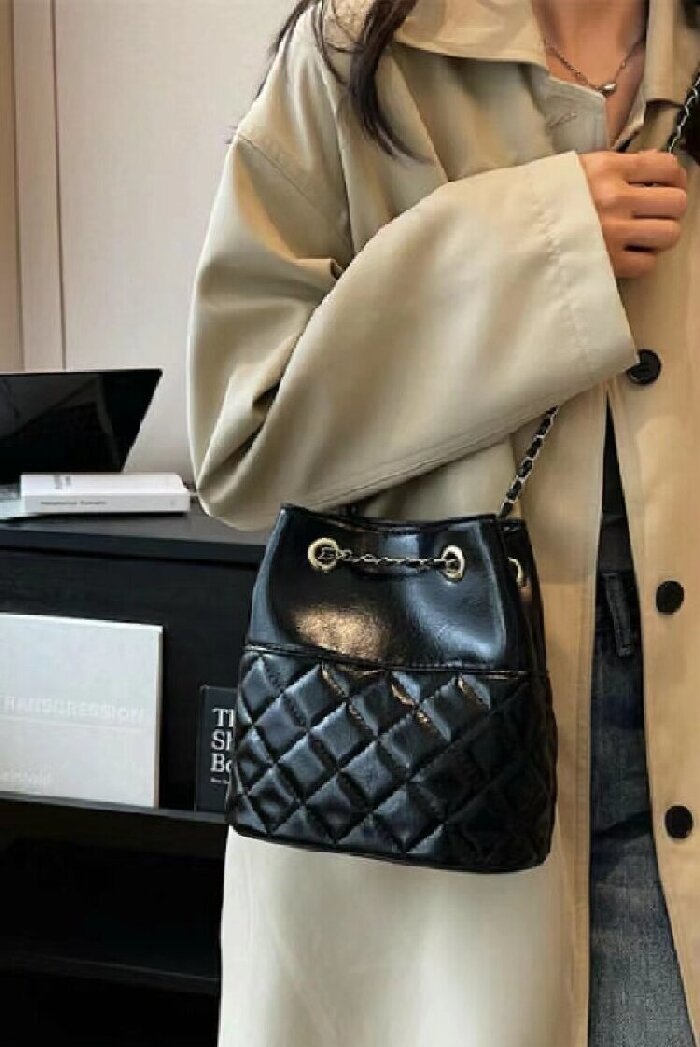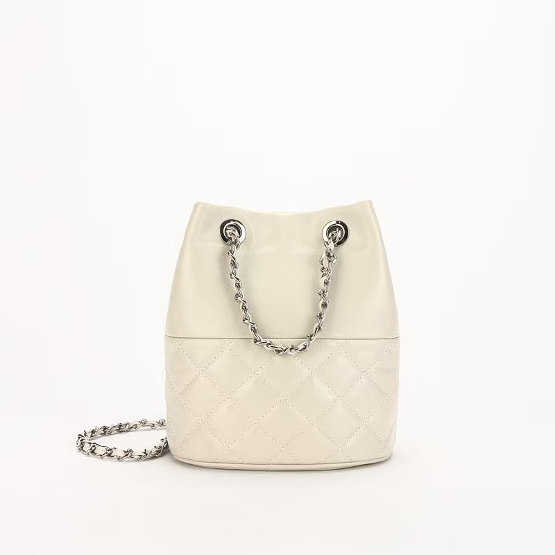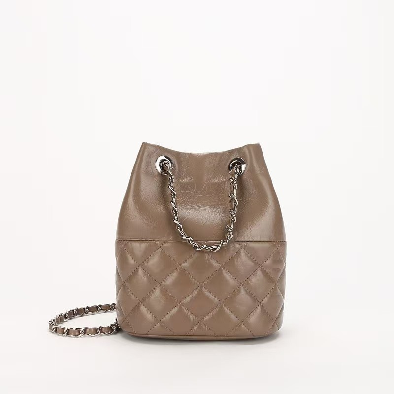 | Top-Grain Oil-Waxed Cowhide Quilted Chain Bucket Bag |