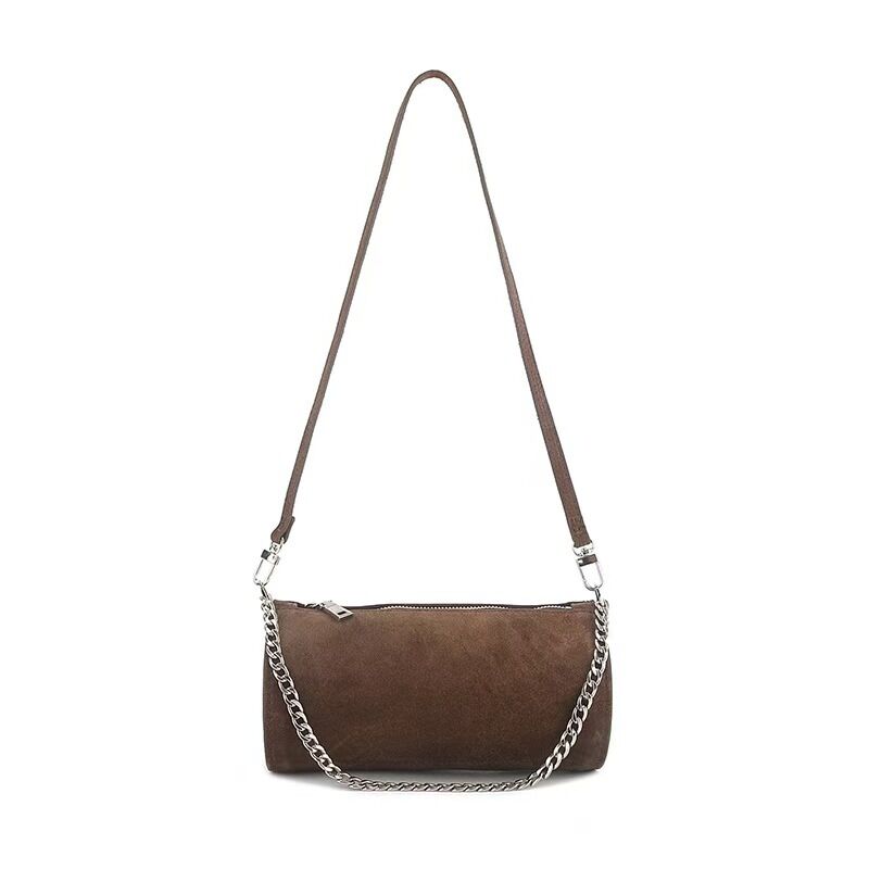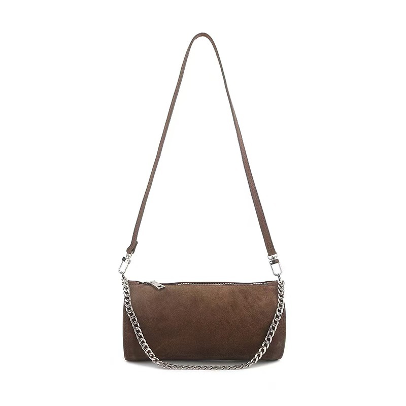 | Top-Grade High Mercerized Frosted Cowhide Cylinder Bag Women's genuine leather fashion Crossbody Clutch Bag Shoulder Bag |