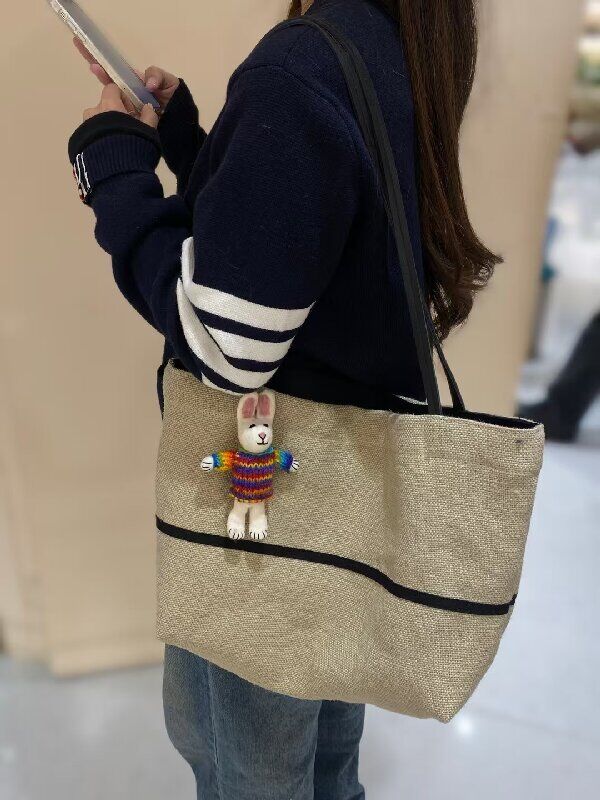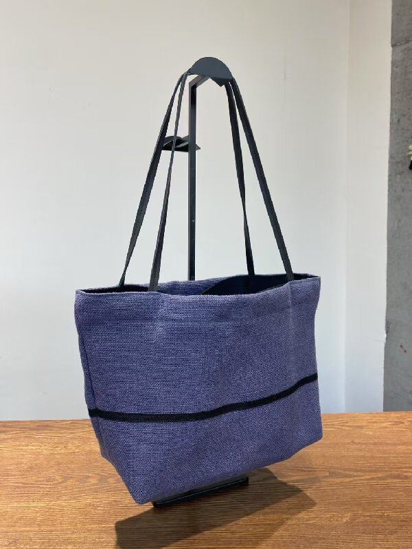 | Cotton-Linen and Leather Straps Large-Capacity Tote Shoulder Bag |