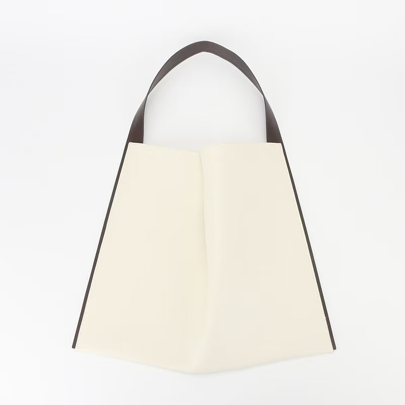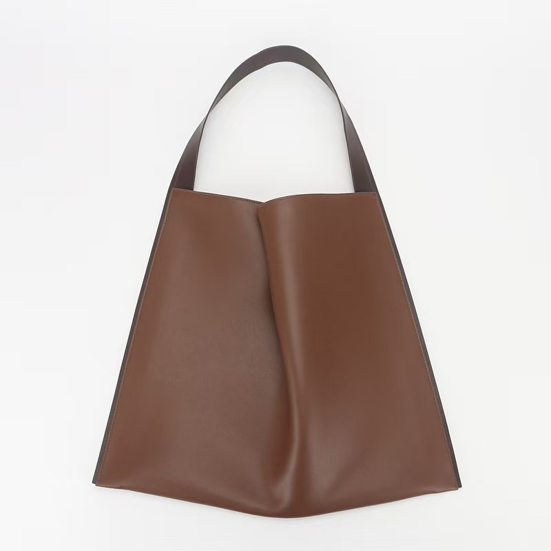 | Top-grain cowhide color-blocking wide-strap single-shoulder tote bag (unisex) |