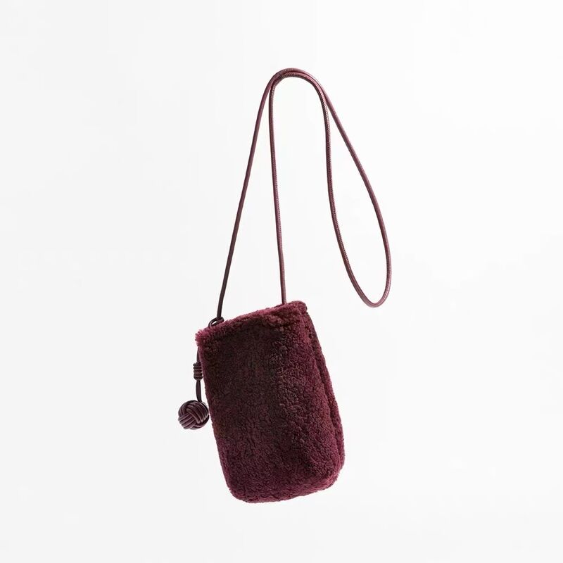 Lamb Wool Phone Bag Mini Crossbody Pouch phone bag cell phone bag mini genuine leather shoulder bag crossbody bag OEM factory wholesale